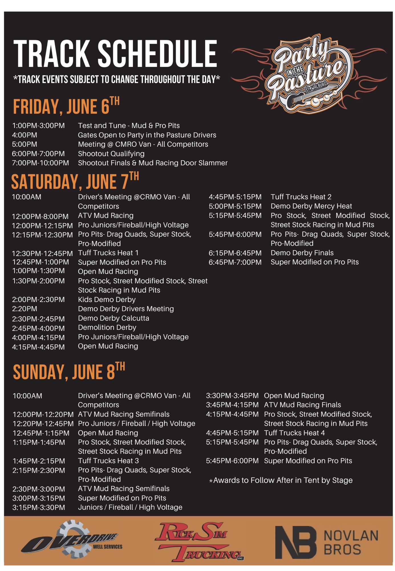 Click on the links above for more information on Cabarets, Slo Pitch Tournament, Demo Derby, Mud Racing, Cornhole and more!